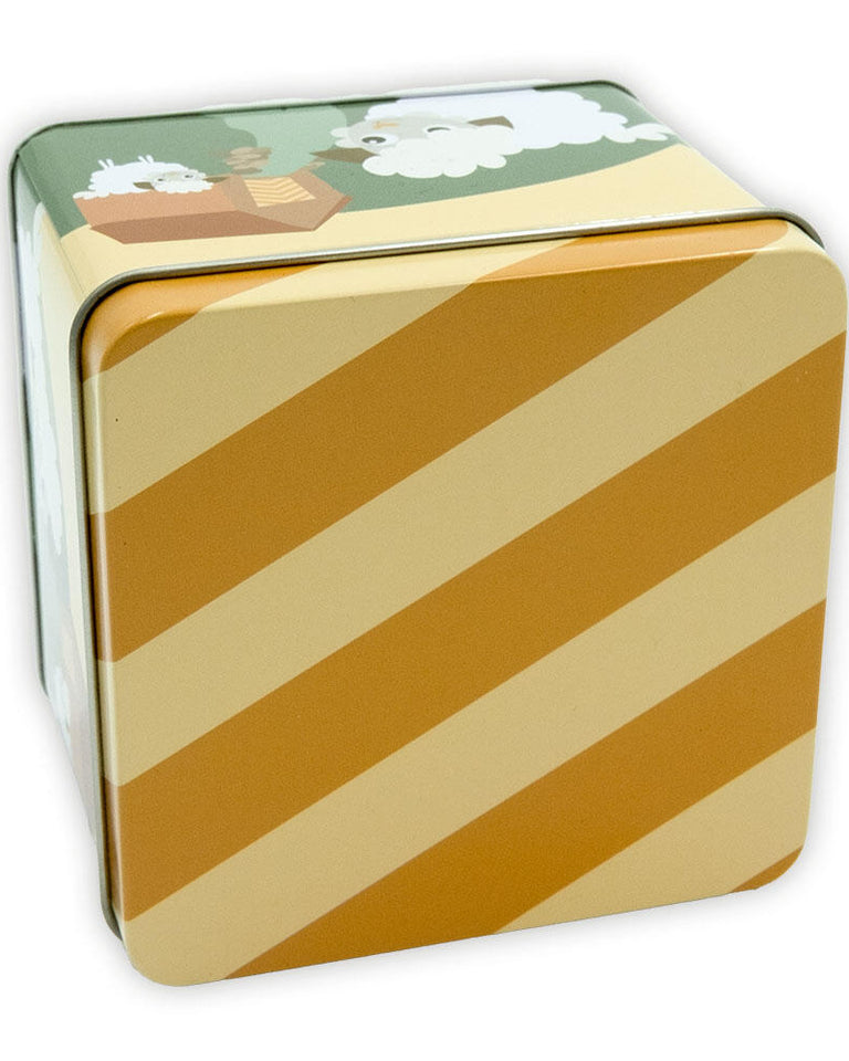 Liten metallboks som er praktisk til oppbevaring av nøtter, frukt og andre småting.