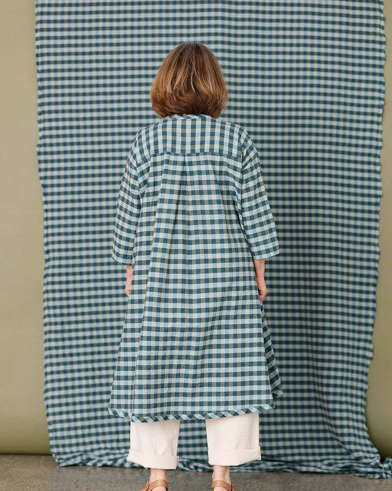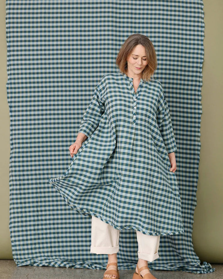 Denne kjolen har en virkelig kul estetikk. Det deilige stoffet faller vakkert og komplementerer den overdimensjonerte, avslappede passformen. Kjolen har et fint bånd nederst der rutene er skråskåret – en fin detalj som også speiler seg langs knappestolpen foran. Kjolen har sidelommer. En flott sommerkjole som kan brukes alene eller lag på lag over bukser. Kombiner den med sandaler og en stråveske for et komplett sommerutseende, eller style den for enhver sesong med denim.