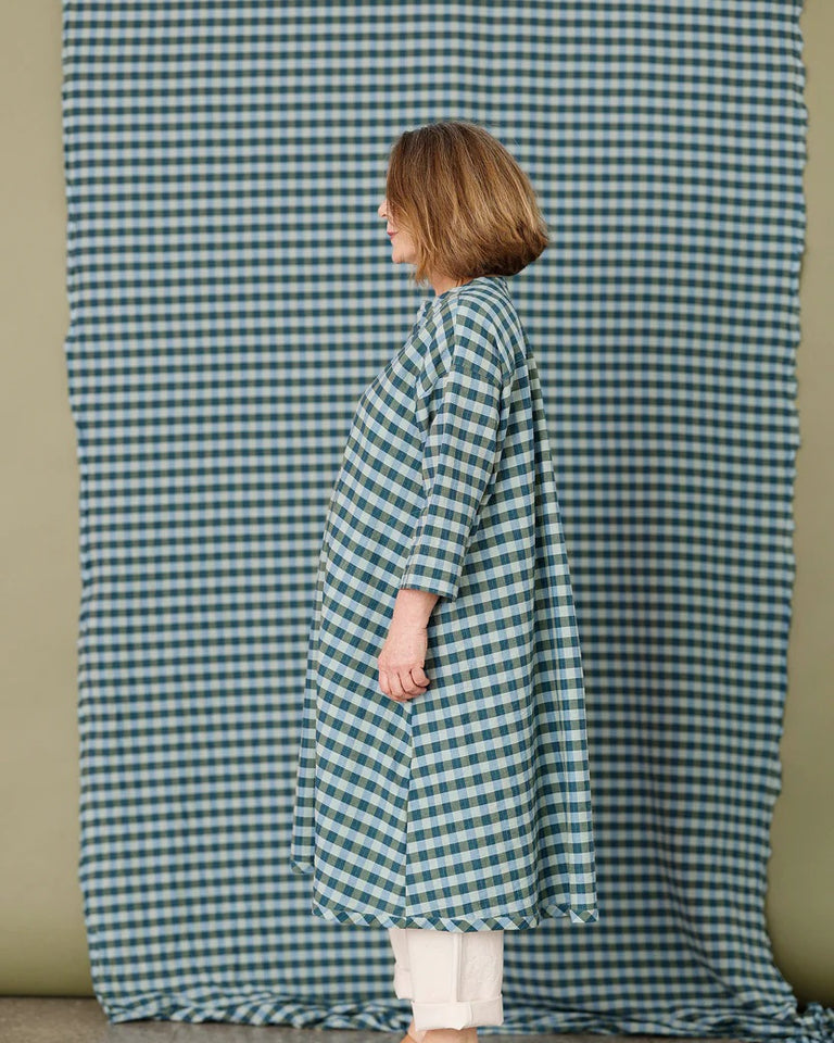 Rutete Kjole i bomull/lin.