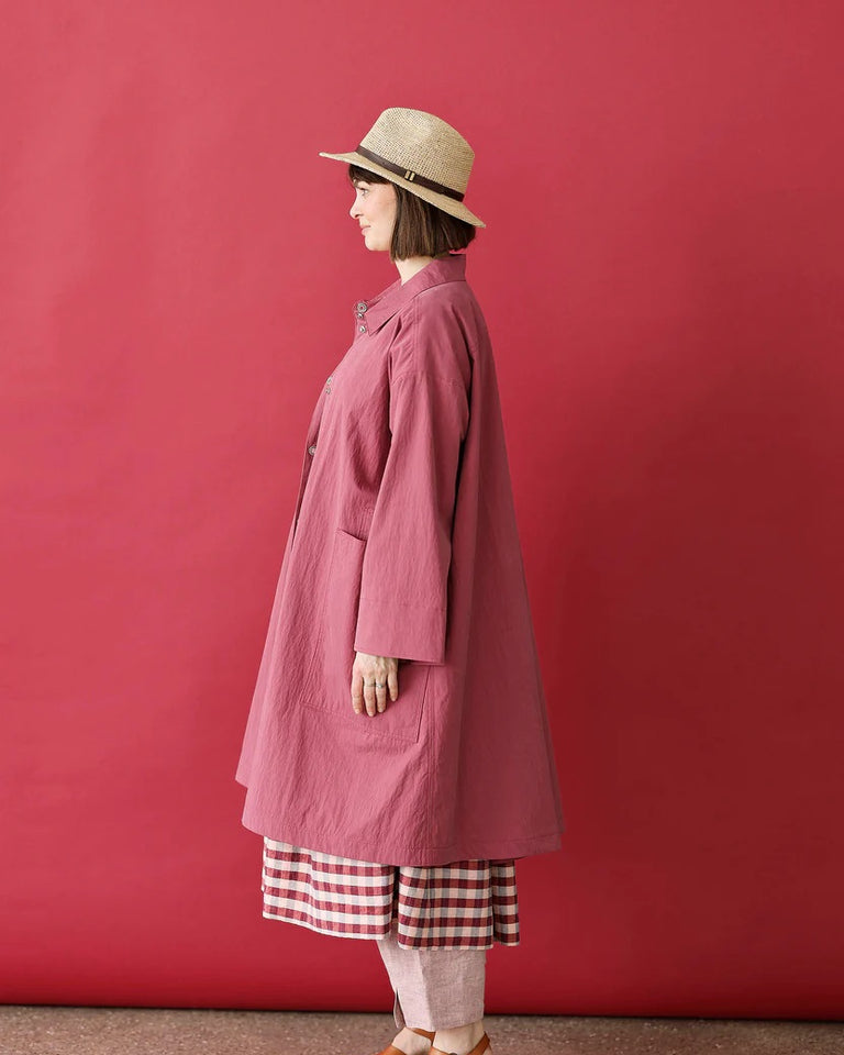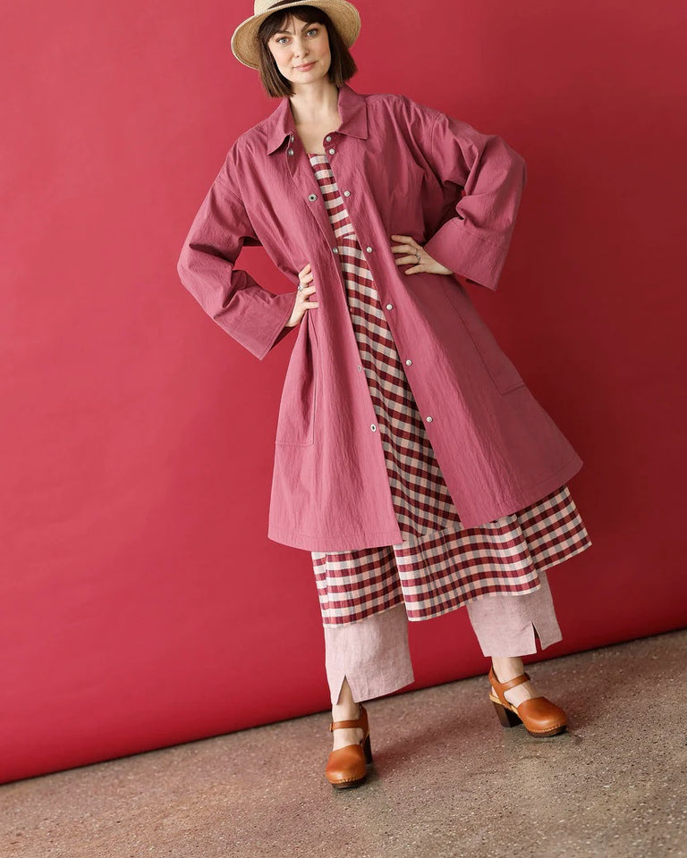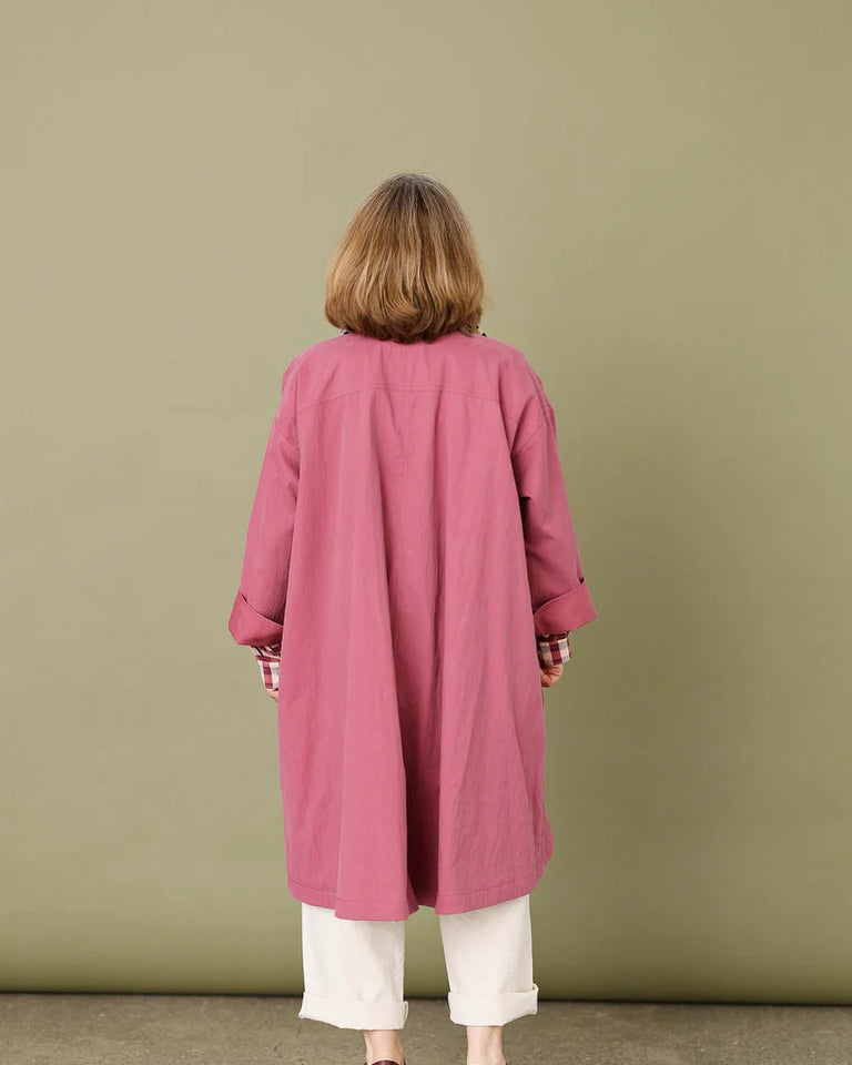Luna-kåpe, med en kul, løs passform i en vakker bringebærrød farge.