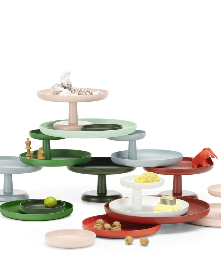 Rotary Tray, designet av Jasper Morrison, er en moderne vri på det klassiske etasjefatet. Fatet er laget av plast, og man kan rotere det øverste fatet. Rotary Tray finnes i flere farger, og med sin diskrete, men spennende form passer den i de fleste interiører. Det kan brukes både som dekorasjon og til servering.