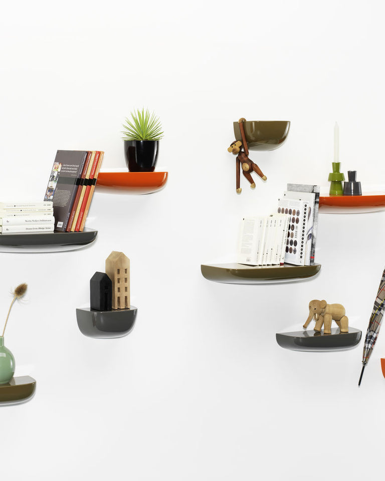 Corniches er designet av Ronan og Erwan Bouroullec for Vitra i 2012. Hyllene kan enkelt plasseres på veggen etter behov i hjemmet. De kan for eksempel brukes i gangen som nøkkelstativ, som et sted å samle favorittgjenstander i stuen, eller hvorfor ikke som en hylle for duftlyset på badet? Corniches er inspirert av en fjellhylle der man oppbevarer eiendelene sine før man dykker i vannet. Hyllene er laget av plast av høy kvalitet i forskjellige former, størrelser og farger.