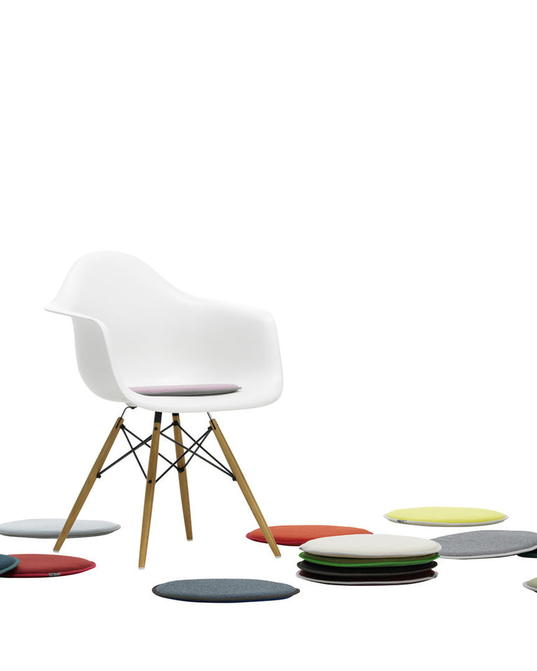 De runde sitteputene, formgitt av Hella Jongerius i 2016, er en enkel måte å tilføre større komfort til stoler laget av tre, metall eller plast. Putene har to forskjellige, harmonerende farger, én på hver side, med synlige stikninger langs kanten. De passer på mange forskjellige stoler, og kan vaskes i maskin.