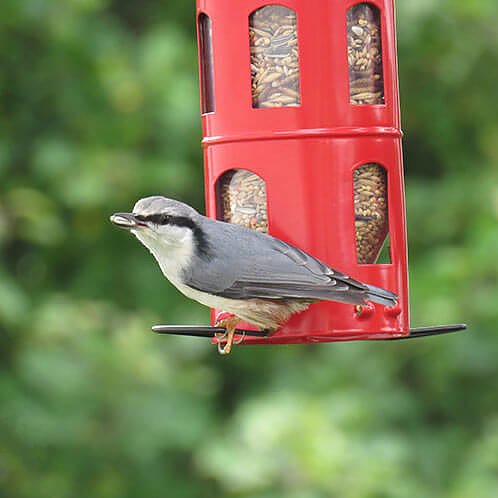 Praktisk fuglemater fra Wildlife Garden med stilrent svensk design. Fyll den opp med fuglefrø, eller ta ut plastinnmaten og fyll den med epler eller meiseboller. Materen kommer med en vaier til oppheng, slik at du enkelt kan henge den i et tre eller på en krok. Materen kommer i flere forskjellige farger, slik at du kan velge den som passer best hos deg.