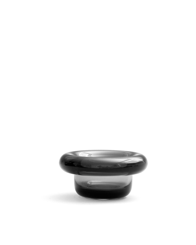 Telysholderen Sirkel er laget i solid glass. Sirkel er designet av Anderssen & Voll for Nedre Foss. Lyset skinner vakkert gjennom glasset.