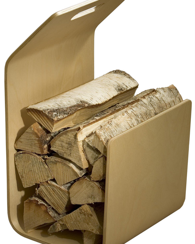 Denne magasinholderen er laget i bøyd tre, slik mange av Aaltos design er. Formgitt av Pancho Nikander i 2004.