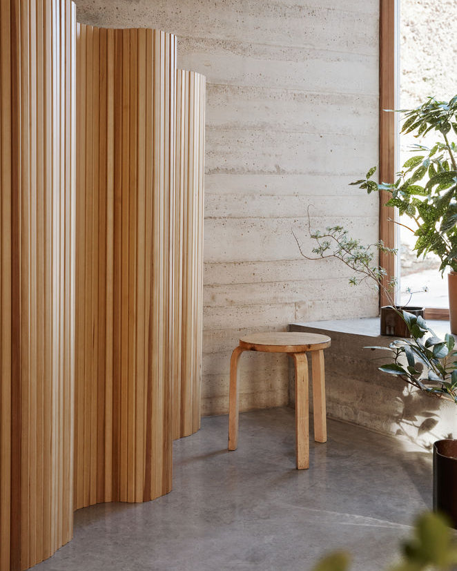 En vakker, fleksibel og minimalistisk skjermvegg eller romdeler i bjørk. Formgitt av Alvar Aalto i 1937.
