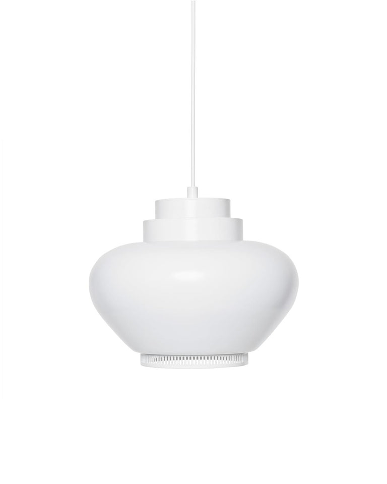 Taklampe i metall, tegnet av Alvar Aalto på 1950-tallet.
