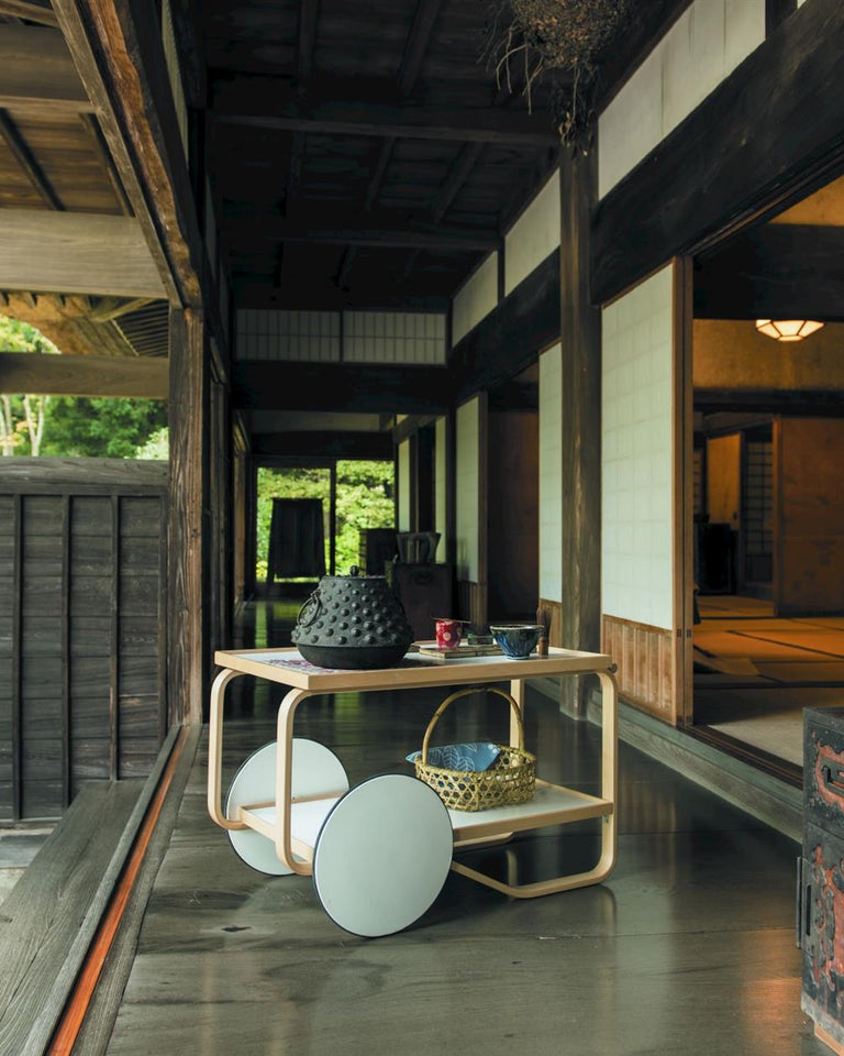 Arteks ikoniske tevogn, tegnet av Alvar Aalto i 1936, er inspirert av britisk tekultur og japansk håndverk. De to hjulene gjør den enkel å flytte.