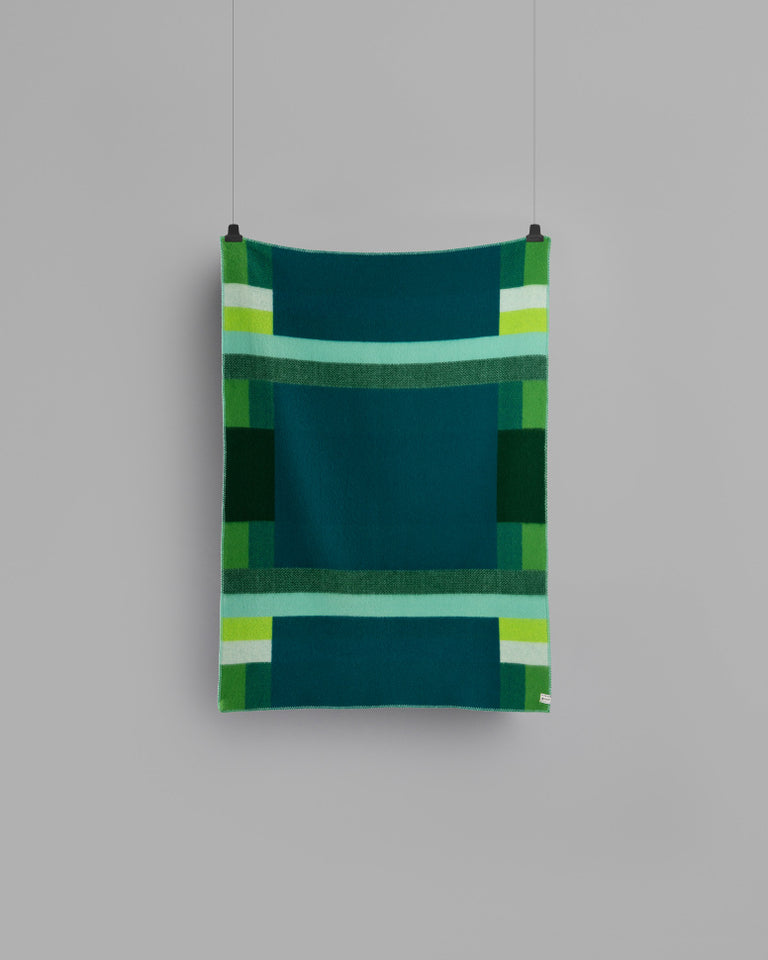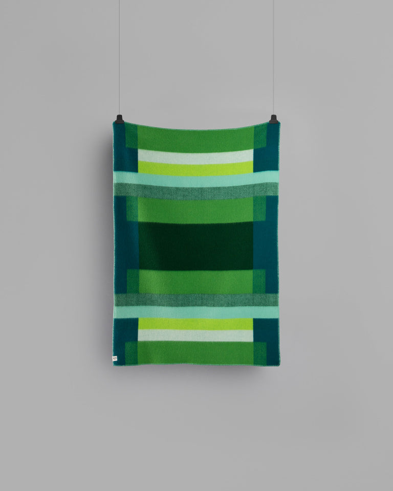 Mikkel pledd og puter kombinerer inspirasjon fra Bauhaus bevegelsen og norsk tradisjonell veving på den ene siden med en moderne og utforskende bruk av farger på den andre. Mikkel av Kristine Five Melvær vant prisen for beste tekstil på 2015 ICFF Editors Awards i New York.