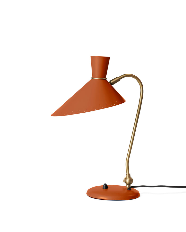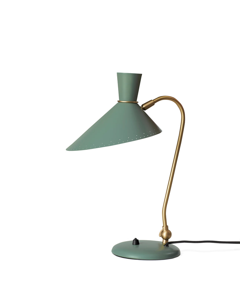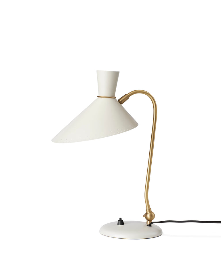 Blomm er en liten bordlampe med stor personlighet, designet på 1950-tallet av stormesteren i dansk lysdesign, Svend Aage Holm-Sørensen, som er internasjonalt anerkjent. Bloom -bordlampen er en av designerens mest ikoniske lamper og kjent i vintage -samfunnet. Kombinasjonen av lekenhet og skarpe linjer gjør bordlampen til et vakkert element på en skrivebords- eller vindushylle. En fin touch er Holm-Sørensens signatur: de karakteristiske hullene i et enkelt mønster langs kanten av metallskjermen, noe som gir en ekstra dimensjon til lyseffekten.