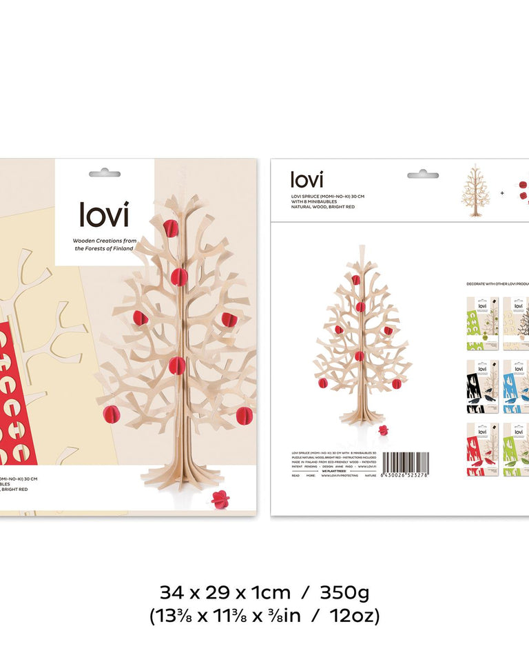 Lovi Spruce Tree 30cm natural wood with 8 minibaubles