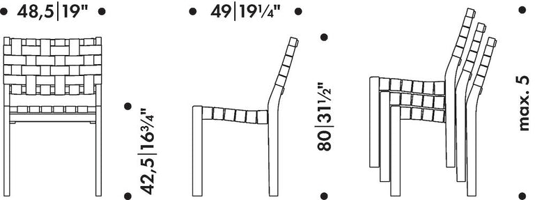 Stol 611 kombinerer en solid bjørkramme med sete og rygg i vevd stoff. Stoffnettet er designet for å tilby komfort og praktisk, og gir etter for sitteren, noe som gjør stolen eksepsjonelt komfortabel. Stol 611 kan enkelt trekkes om, noe som betyr at stolen kan ha mange livssykluser. En av Alvar Aaltos første moderne møbeldesign, Chair 611 har vært i kontinuerlig produksjon helt siden den ble opprettet. Passer for nesten alle miljøer, Stol 611 kan stable opptil fire stoler.