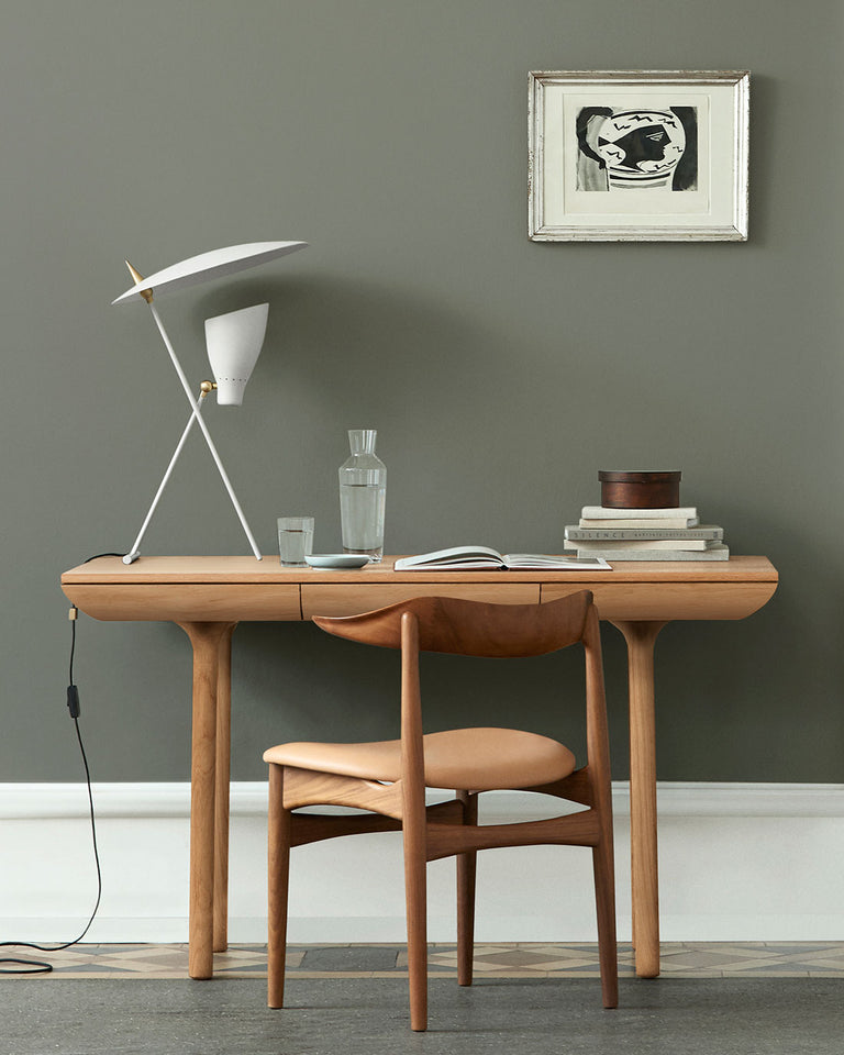 Cow Horn Chair er en ikonisk 1960-tallsstol og et skulpturelt mesterverk for designelskere, skapt av den internasjonalt anerkjente danske møbeldesigneren Knud Færch. Cow Horn Chair gir eksemplarisk sittekomfort, både opptar og skaper en plass – en av de grunnleggende ideene i Knud Færchs design. Armlenenes vakre, buede og kompliserte buede linjer gjør Cow Horn Chair til et ekte håndverk, med en unik eleganse og fullendt finish. Tro mot designånden fra 1960-tallet, er spisestuestolen tilgjengelig i valnøtt eller en connoisseur-versjon, hvor ryggstøtte og ramme er i ulike tresorter. Setet kommer med trekk i eksklusivt Kvadrat-stoff eller skinn av toppkvalitet. Velg enten et eksklusivt Kvadrat møbelstoff eller skinn i nøye utvalgte nyanser fra Warm Nordic-universet. Stolen finnes i flere eksklusive tresorter.
