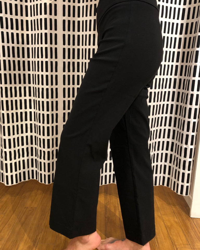 Vårnyhet MAIJA-bukser har et rett ben og mer vidde på leggen. MAIJA-bukser er laget av svart elastisk viskoselastan. Lett å trekke på, ingen glidelås. Bredt dobbel midjepanel gir ekstra støtte. Innvendig sømlengde i størrelse 36 er 66 cm. MAIJA-buksene er designet i Finland og laget i Litauen.