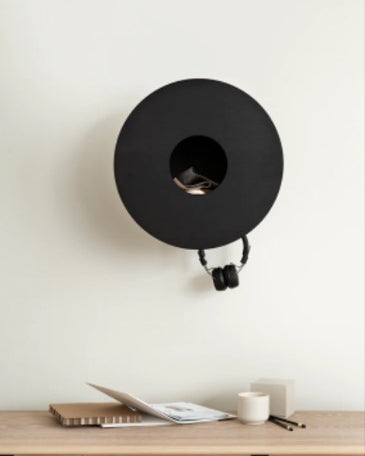 Det sirkulære frontpanelet skjuler to hyller, en på innsiden og en på toppen. På bunnen er det 4 praktiske kroker.