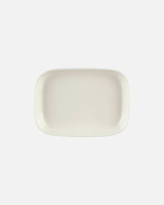 Made from white stoneware, the Oiva serving dish features the Räsymatto pattern on the outer rim. The dish is dishwasher, oven, microwave, and freezer proof.