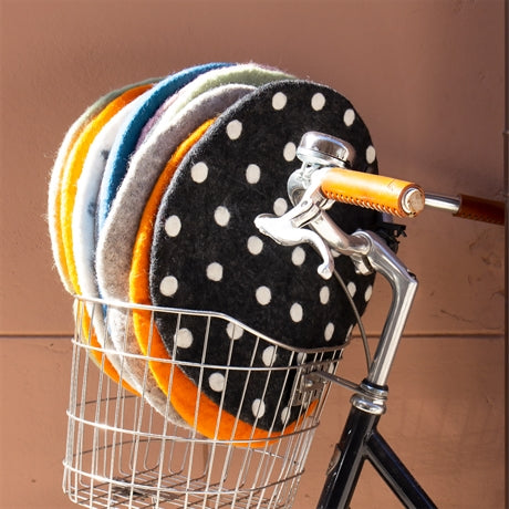 De fine tovede sitteputene er laget helt for hånd i Nepals høyland. Seteputene er nyttige både innendørs og utendørs, siden ull er både smuss- og fuktavvisende og oppvarmende.