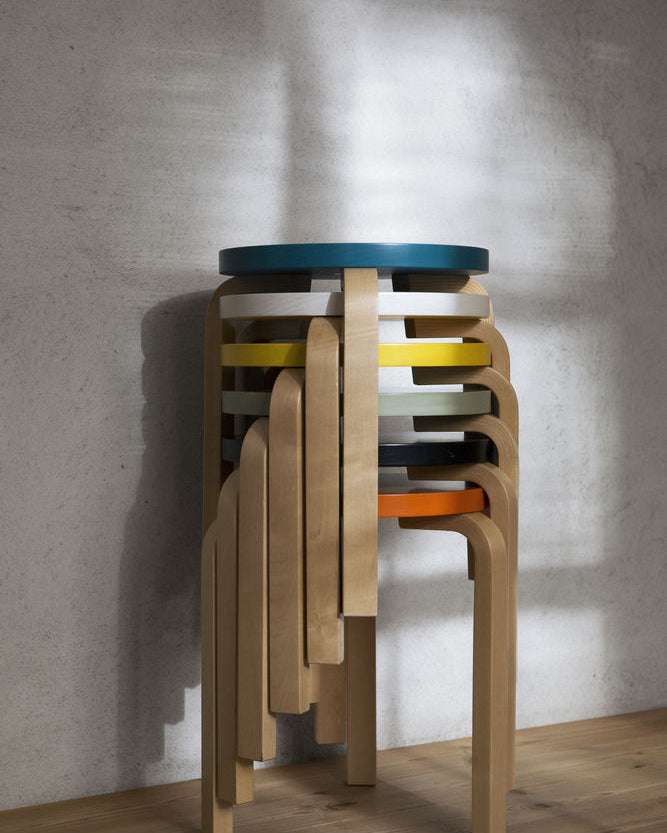 Den klassiske trebeinte krakken fra Artek, designet av Alvar Aalto i 1933. Kan stables. Laget i Finland.