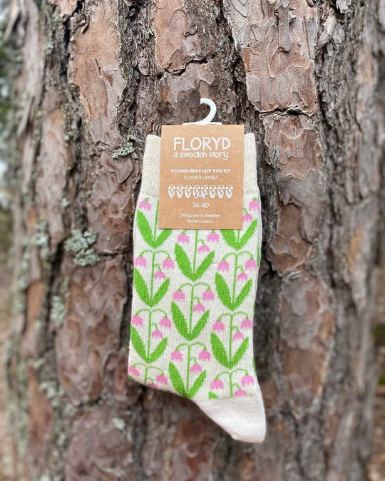 Sokker i svensk design. Herlig retro! Elastisk modell, passer størrelse 36-40