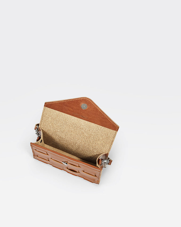 Mini Shoulder Bag med fletting foran og glatt bakside. Vesken har et hovedrom som lukkes med en v-formet klaff med magnetlukking.