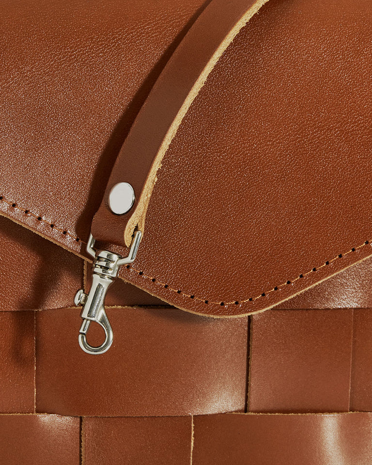 Vesken er håndlaget i Sverige av vegetabilsk garvet skinn med en dyp farge og fin glans.
