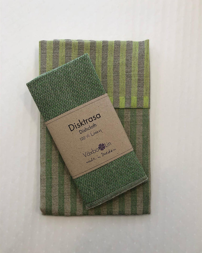 Lilla Storm linhåndduk og matchende disktrasa. En perfekt kombinasjon til kjøkkenet!