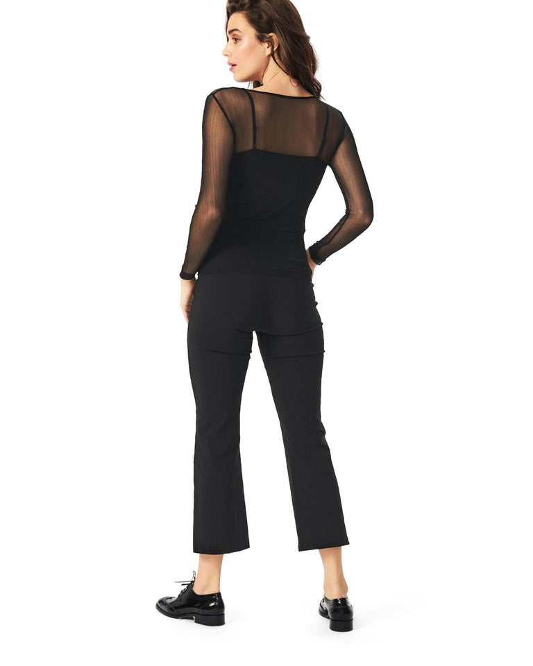 Bukse med svai og bred linning som kan trekkes opp over magen eller brettes ned til normal midjehøyde. Denne effekten gjør buksen svært komfortabel å ha på seg. Det er stretch i buksen som sikrer god bevegelighet. En behagelig basisbukse med god passform.